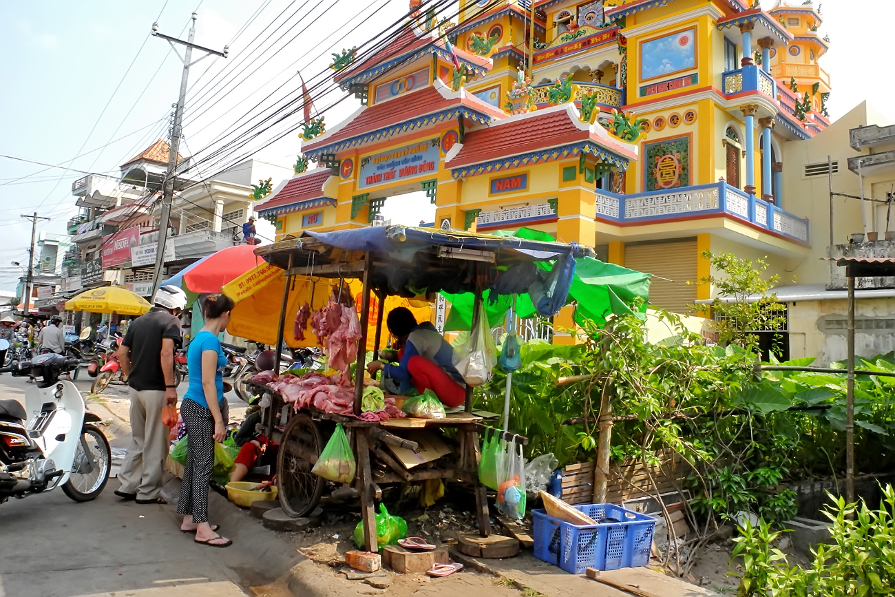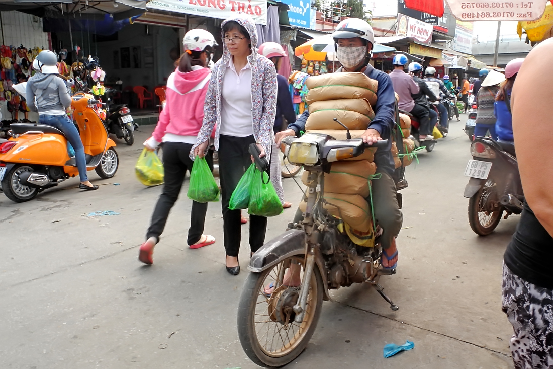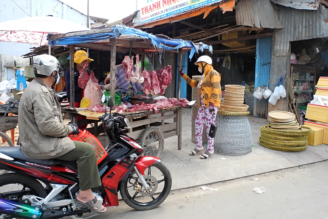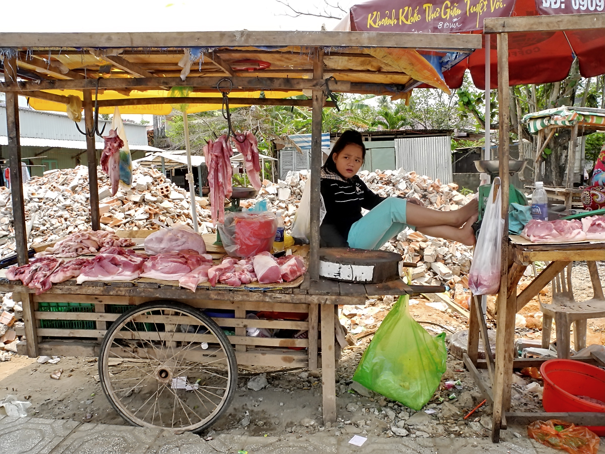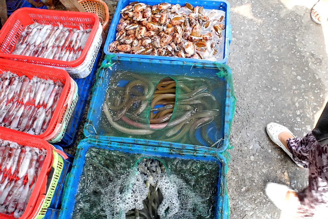 Если вы хотите купить морких продуктов подешевле, можно посетить обычный рынок, где в основном рыба, как у нас картошки осенью. Здесь конечно все пропитано вьетнамским духом, мусор вперемешку с мясом, но мне после африканских рынков на экваторе это не удивило.