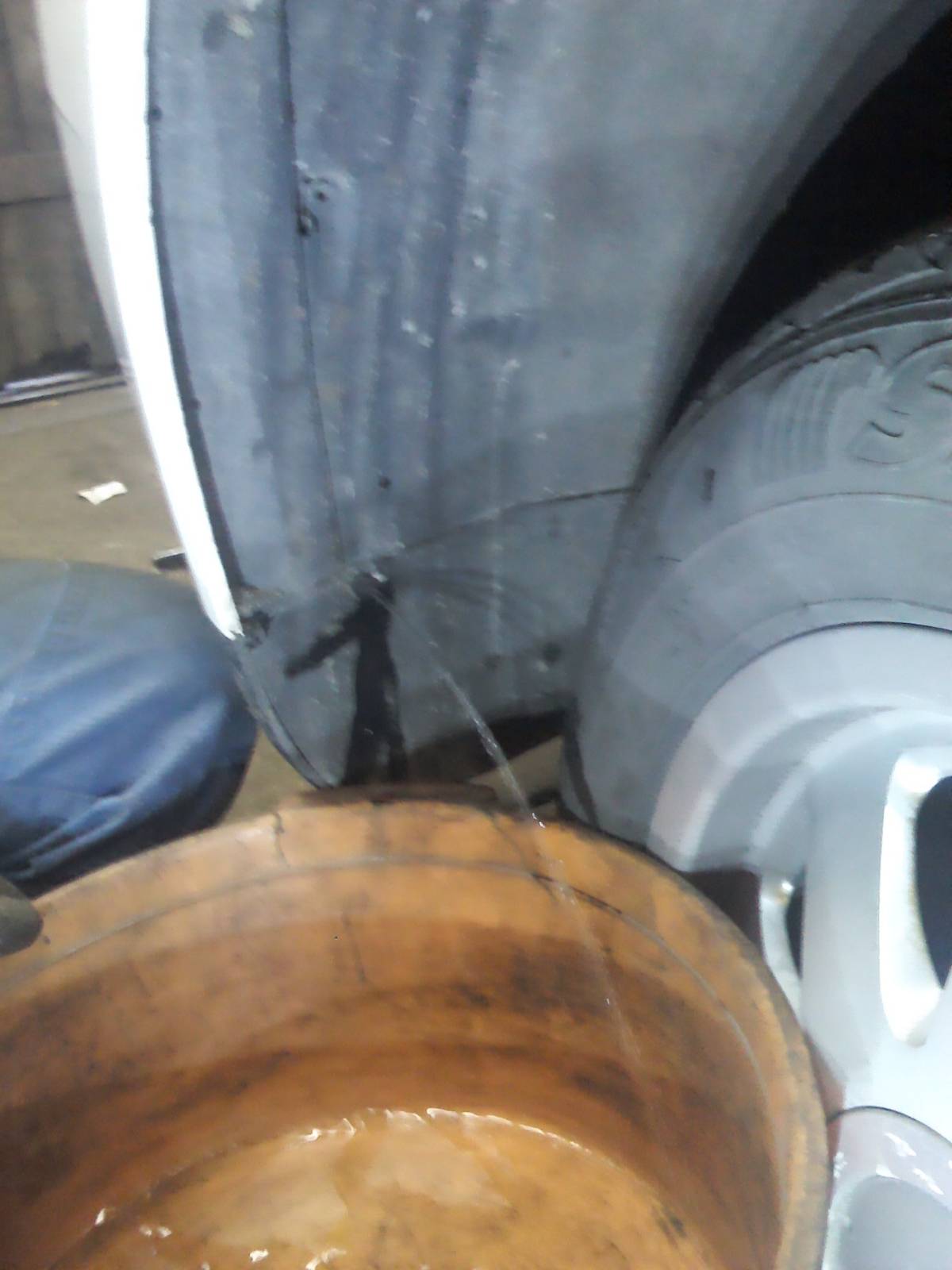 Это надо было на машине снять арочную защиту под колесом, но у нас же любят заколхозить саморезов куда не попадя и не глядя и вот откручиваю там саморез сантиметра 3-4 а в том месте бачок омывайки как раз находится вот с него и потекло
