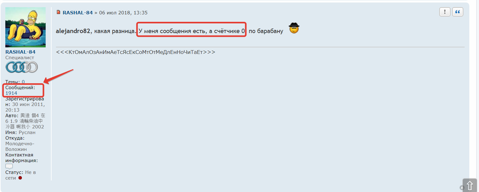 Мужики, описался я, большое сорри. :hi: У меня в темах было 0, а не в сообщениях , что даже видно на скрине выложенном alejandro82, но сейчас строки темы под аватаром вообще нет, по крайней мере на 55 странице нет ни у кого.Сейчас отправлю сообщение, что покожет стр. 56, если, что буду скринить.