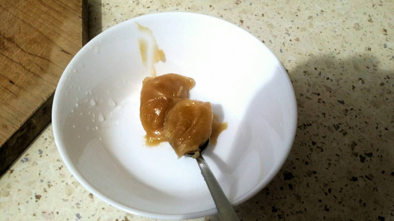 Все перемешал пока мед не растворился, капельку воды добавил.