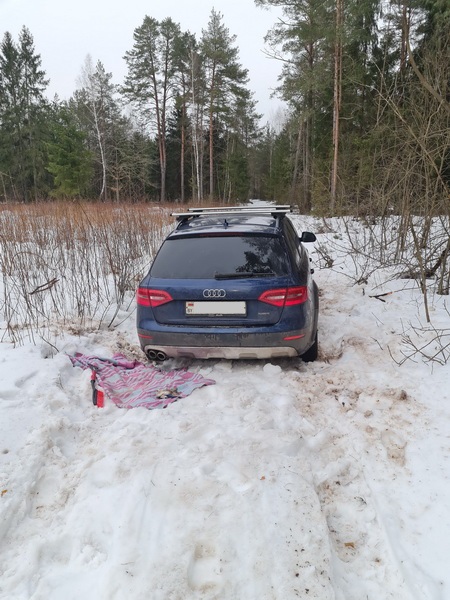 Остановка привела к тому, что машина зависла на снегу. Лопата была оставлена дома за неделю до этой поездки, потому что зима же уже должна была закончиться.