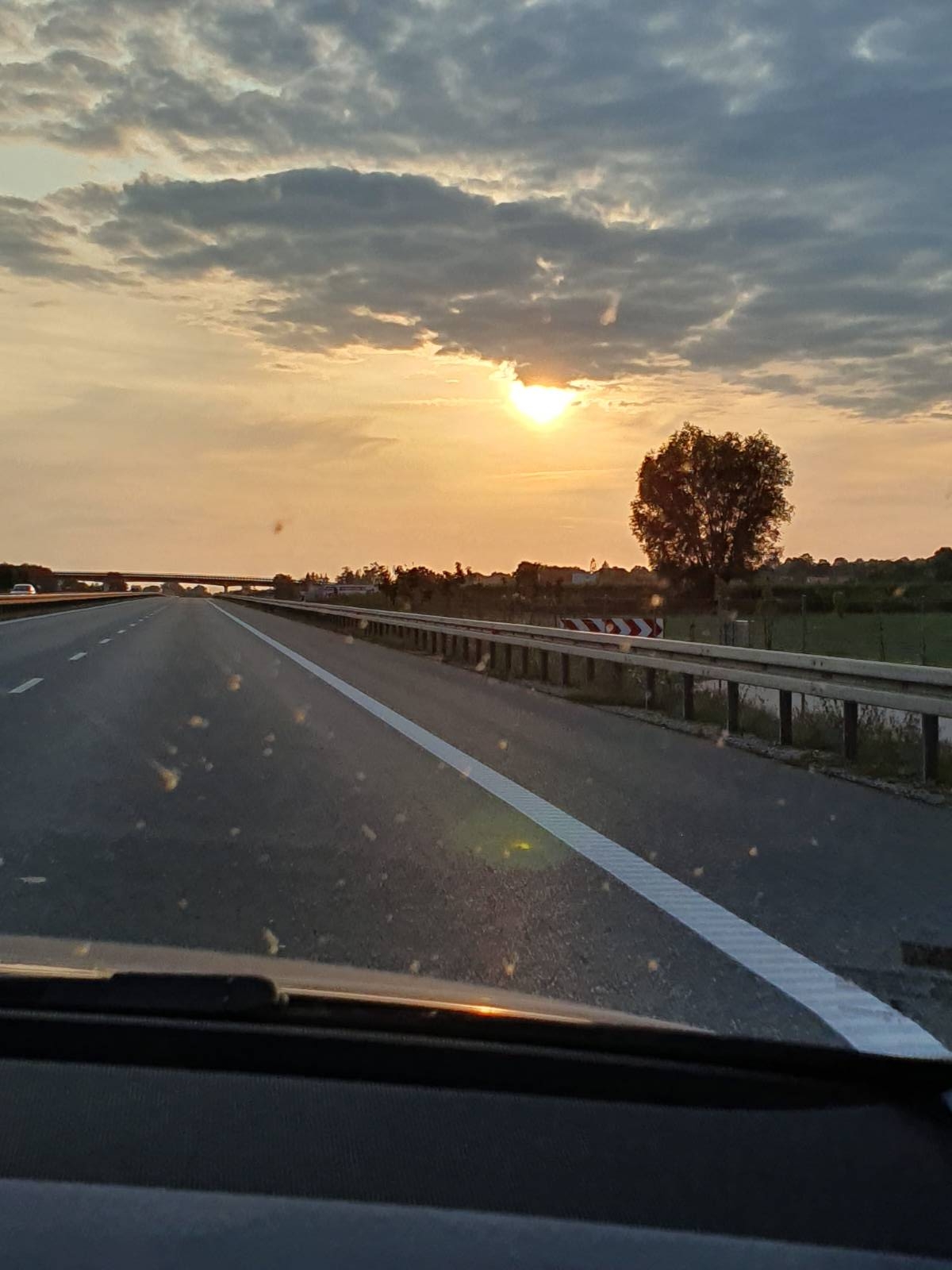 в городской застройке это даже не закат, а отсвет на облаках, а уж при нашей погоде - сумрачный вечер... боролся как мог, чтоб осветлить картинку, через час это уже будет ночная съёмка и как поймать лица в движении задача не для телефонной камеры...