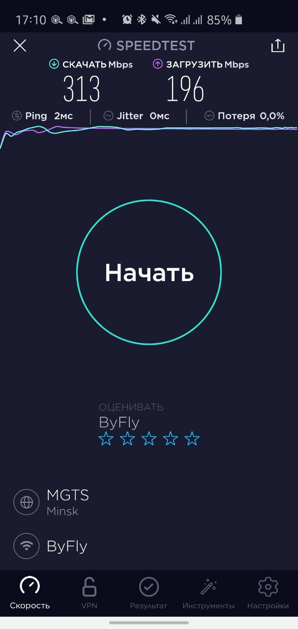 Сегодня случайно проверил скорость нета и вот, хотя у меня тариф Рекорд50new