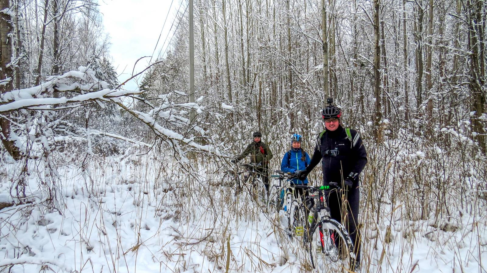 Последний голубой вагон электрички скрывается в метели, которую сам же и создал, а группа из 5 велосипедистов остается наедине с природой в полной тишине: