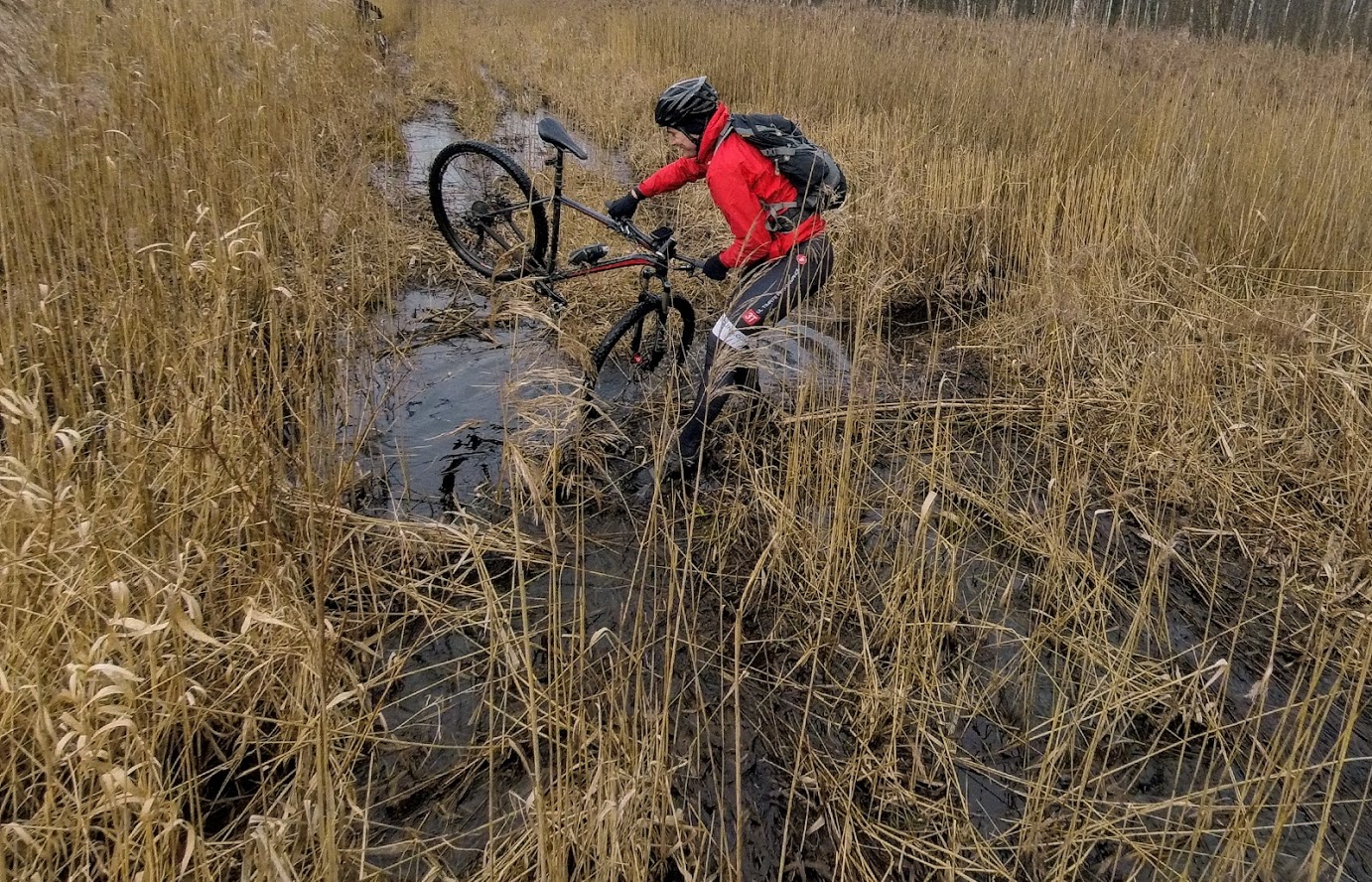 Почти половину этого расстояния проходим пешком. Дальше становится легче, можно ехать, преимущественно лесные дорожки, деревенские улочки, поля, куда же без них в Беларуси: