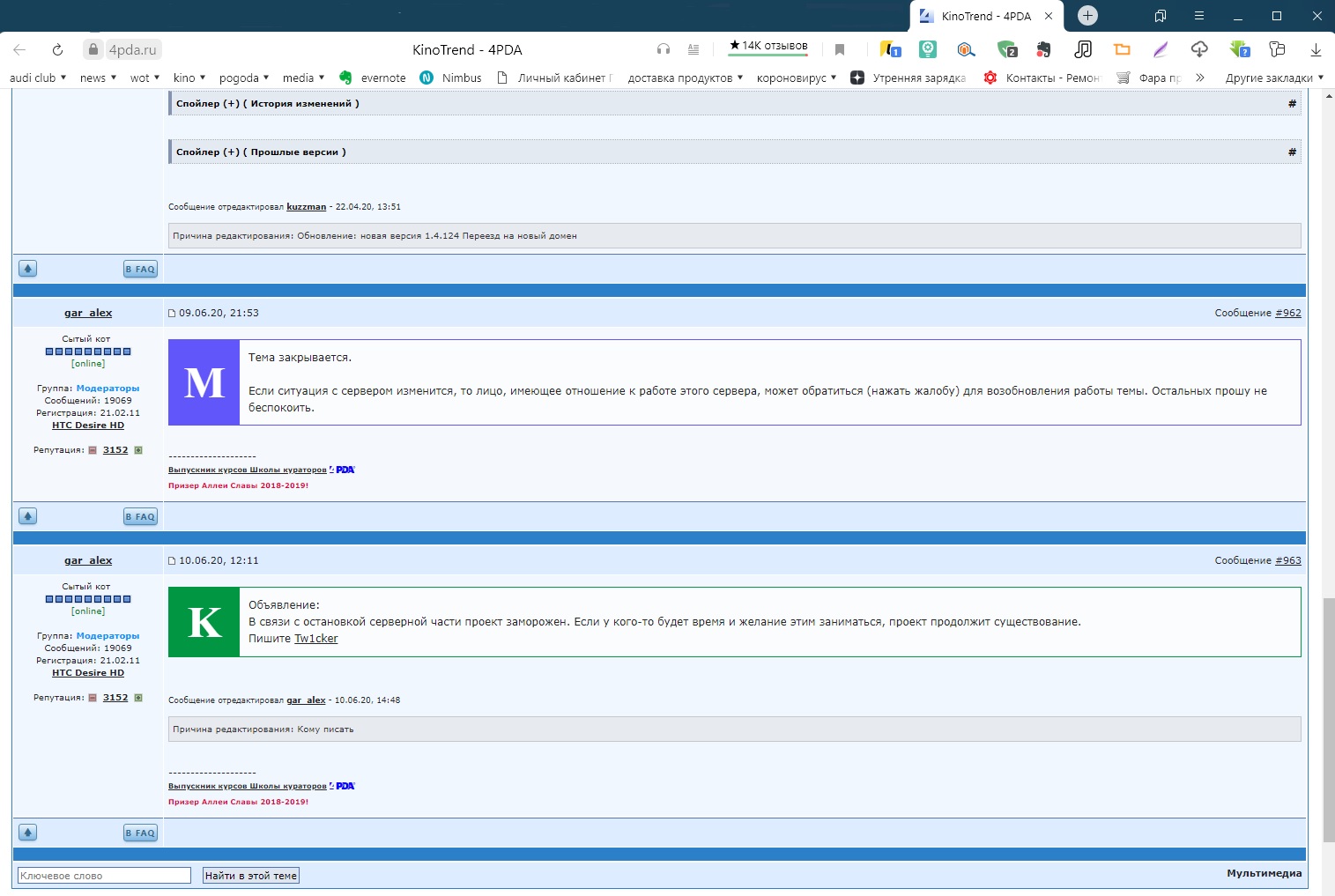 Паша писал(а):Источник цитаты KinoTrend уже как минимум неделю не загружается. Может кто знает в чём проблема?